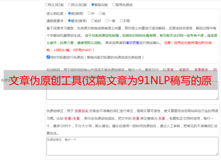 文章伪原创工具(这篇文章为91NLP稿写的原创内容不可当真!)