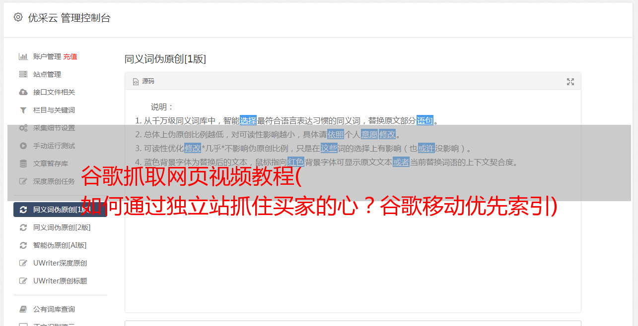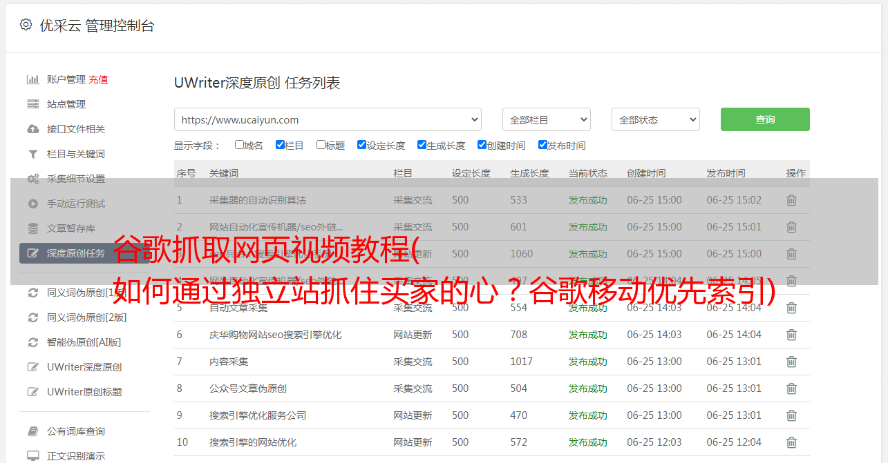 优采云 发布时间: 2021-11-13 08:12谷歌抓取网页视频教程(