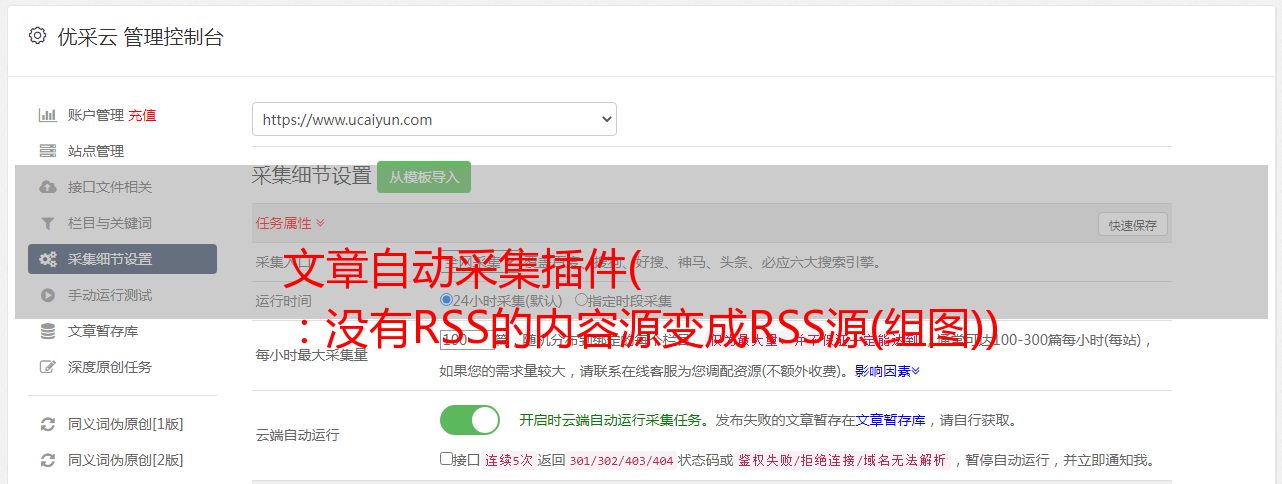 WPeMatico还有很多丰富的功能设置,比如:自定义文章模板设置、自定义字段、内容重写替换、自定义标题、内容字数控制等,就不一一截图了。