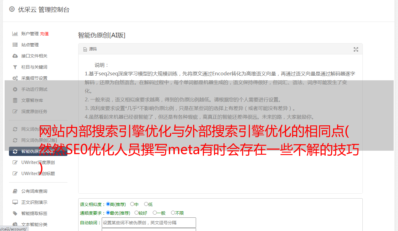 优采云 发布时间: 2021-11-13 23:04网站内部搜索引擎优化与外部搜索引擎优化的相同点(