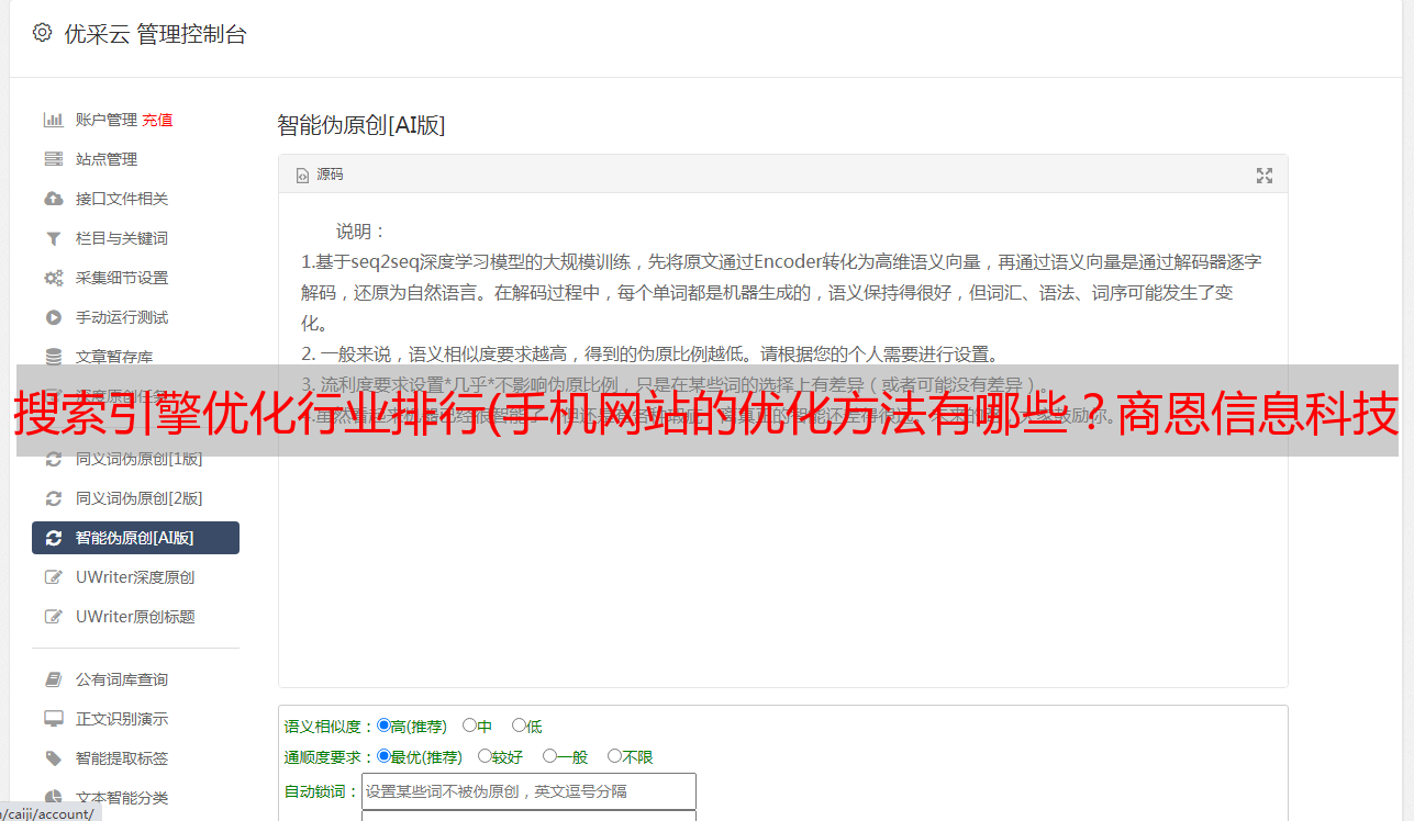 优采云 发布时间: 2021-11-14 02:17搜索引擎优化行业排行(手机网站的优化方法有哪些?商恩信息科技
