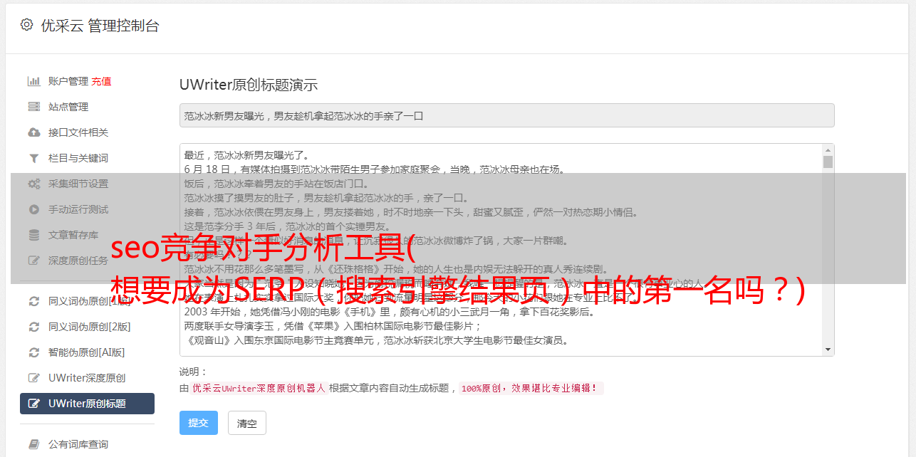 优采云 发布时间: 2021-11-14 03:04seo竞争对手分析工具(