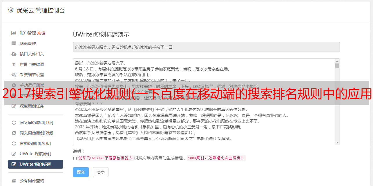 2017搜索引擎优化规则(一下百度在移动端的搜索排名规则中的应用(图))