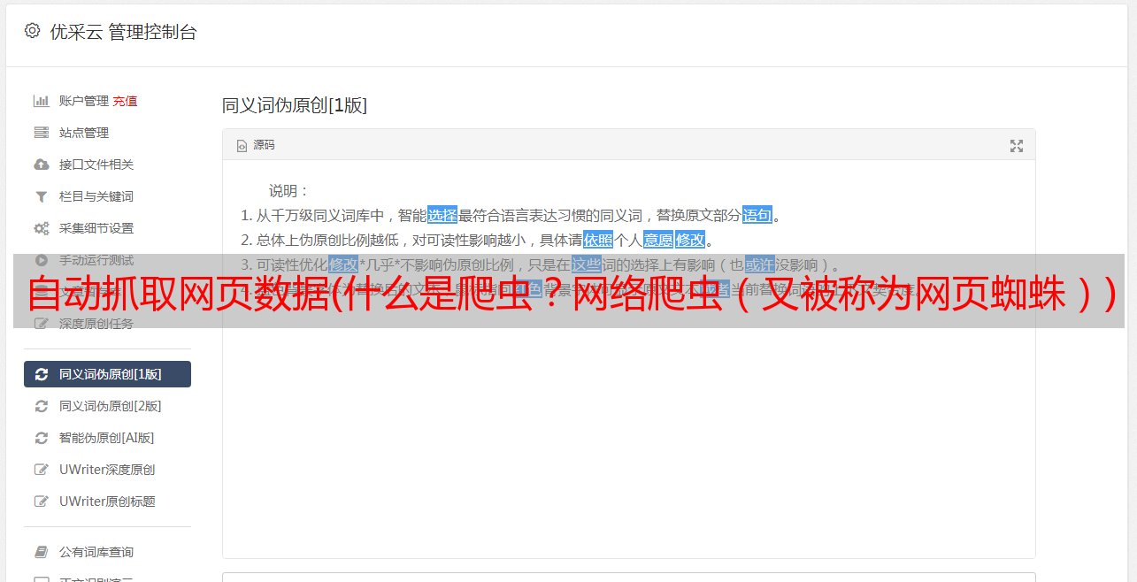 优采云 发布时间: 2021-11-14 03:05自动抓取网页数据(什么是爬虫?网络爬虫(又被称为网页蜘蛛))