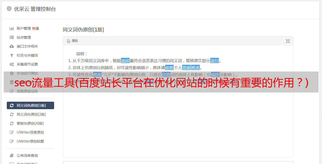 优采云 发布时间: 2021-11-14 03:14seo流量工具(百度站长平台在优化网站的时候有重要的作用?)