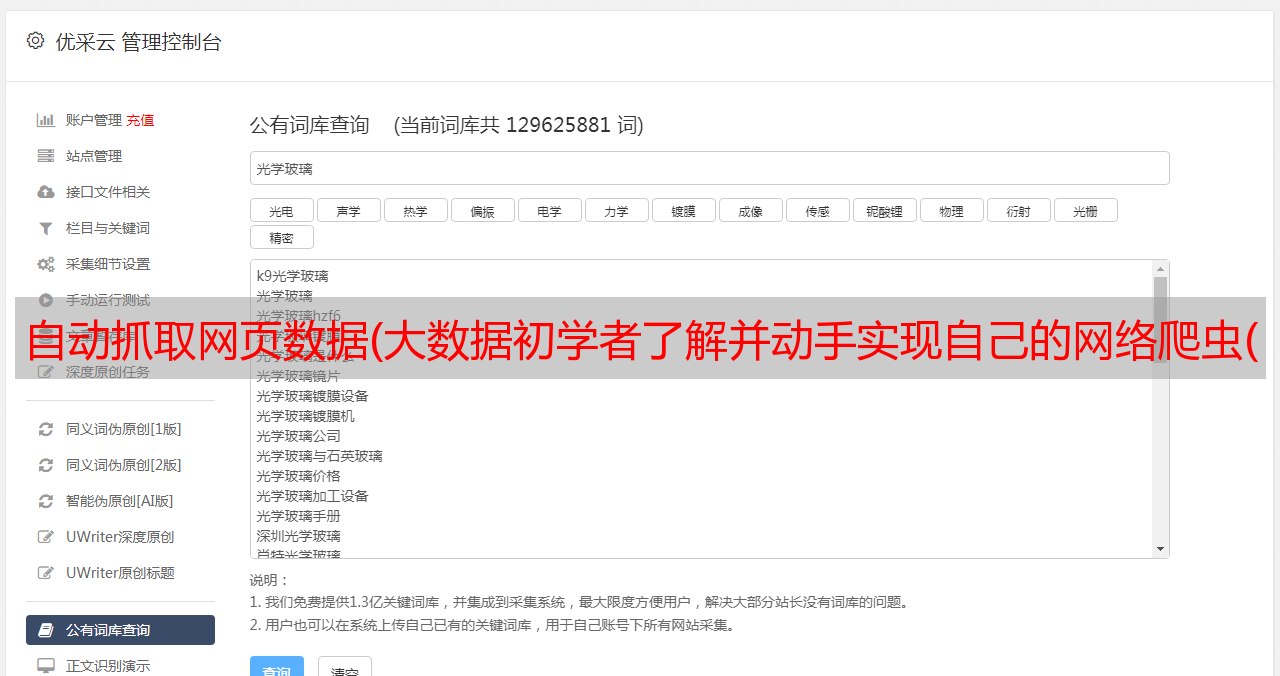 优采云 发布时间: 2021-11-14 04:13自动抓取网页数据(大数据初学者了解并动手实现自己的网络爬虫(图))