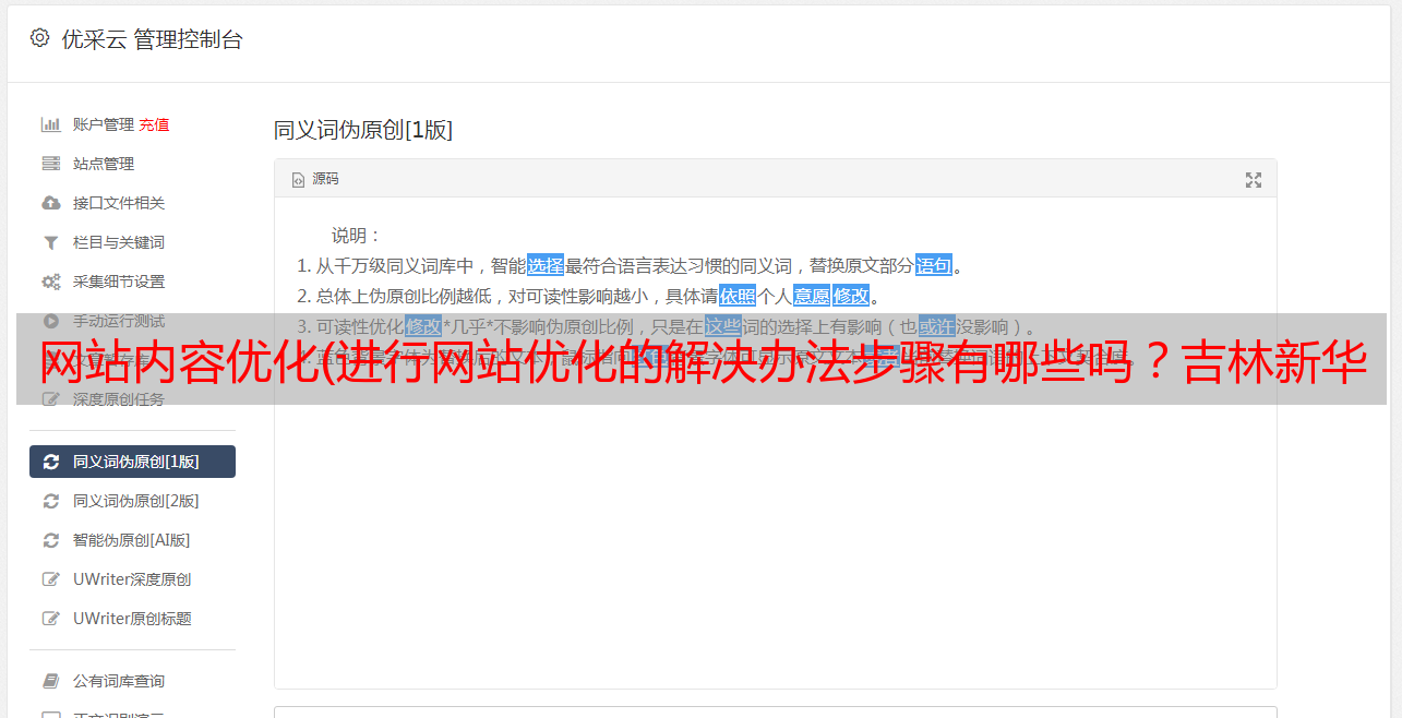 优采云 发布时间: 2021-11-14 06:12网站内容优化(进行网站优化的解决办法步骤有哪些吗?吉林新华明)