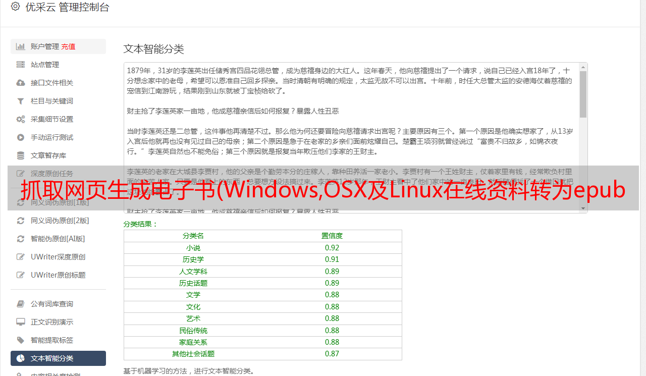 优采云 发布时间: 2021-11-14 06:15抓取网页生成电子书(Windows,OSX及Linux在线资料转为epub或mobi格式)