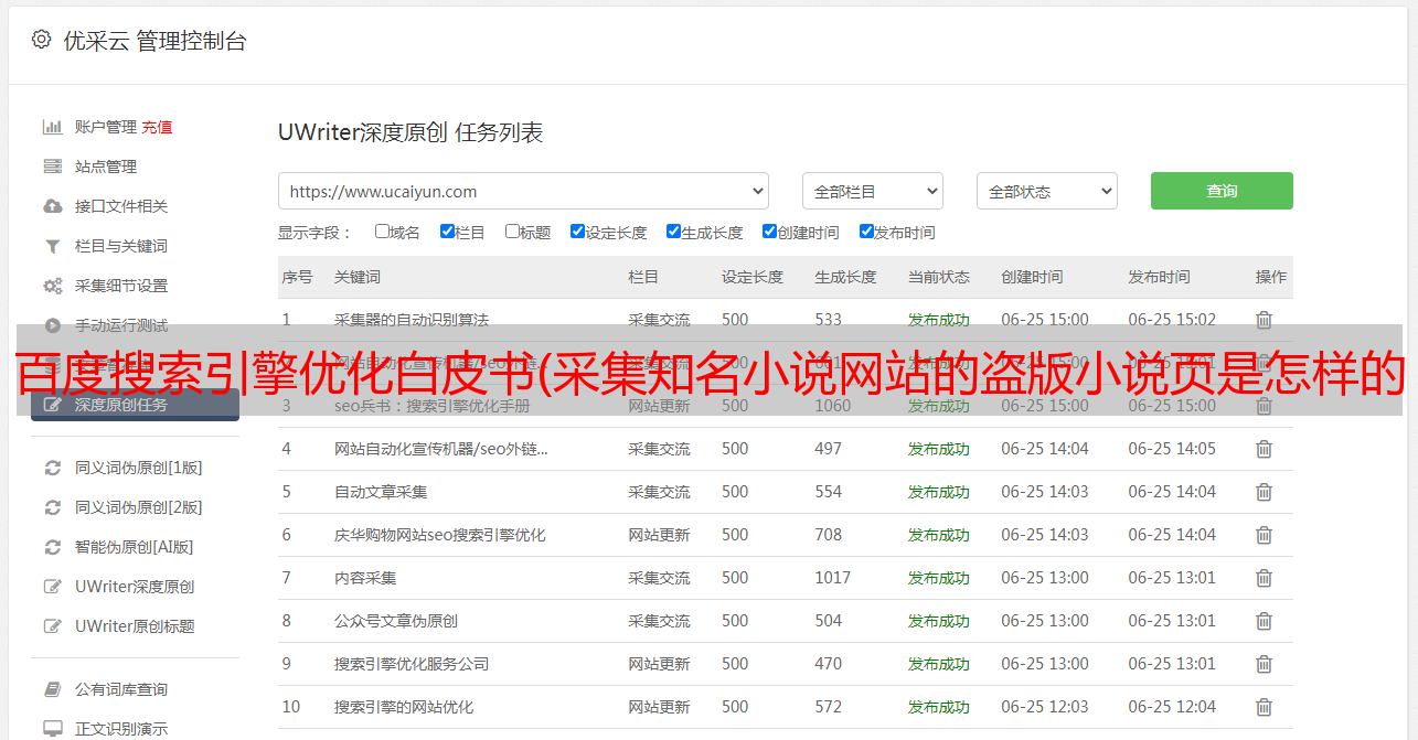 优采云 发布时间: 2021-11-14 10:17百度搜索引擎优化白皮书(采集知名小说网站的盗版小说页是怎样的?(图))