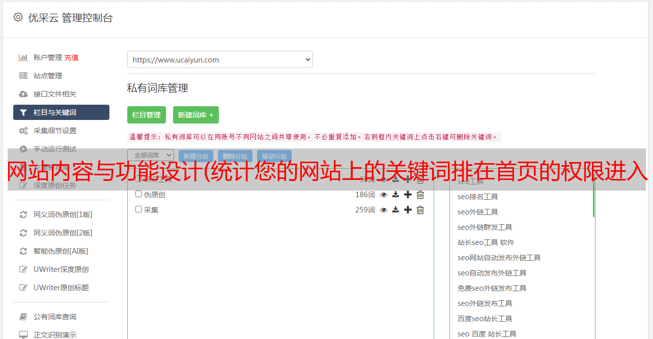 优采云 发布时间: 2021-11-14 13:03网站内容与功能设计(统计您的网站上的关键词排在首页的权限进入运营罗盘为例