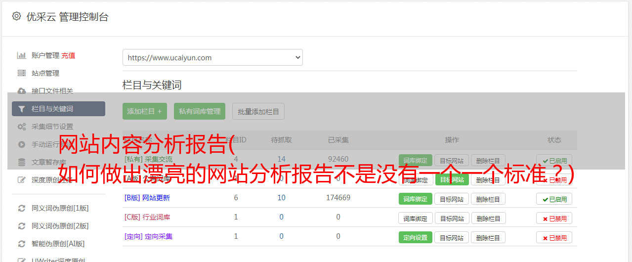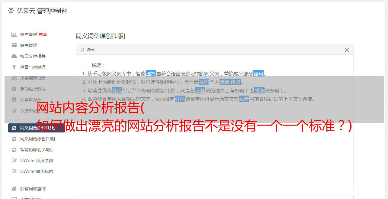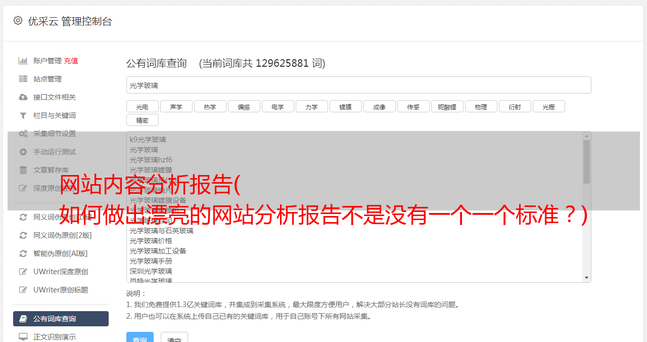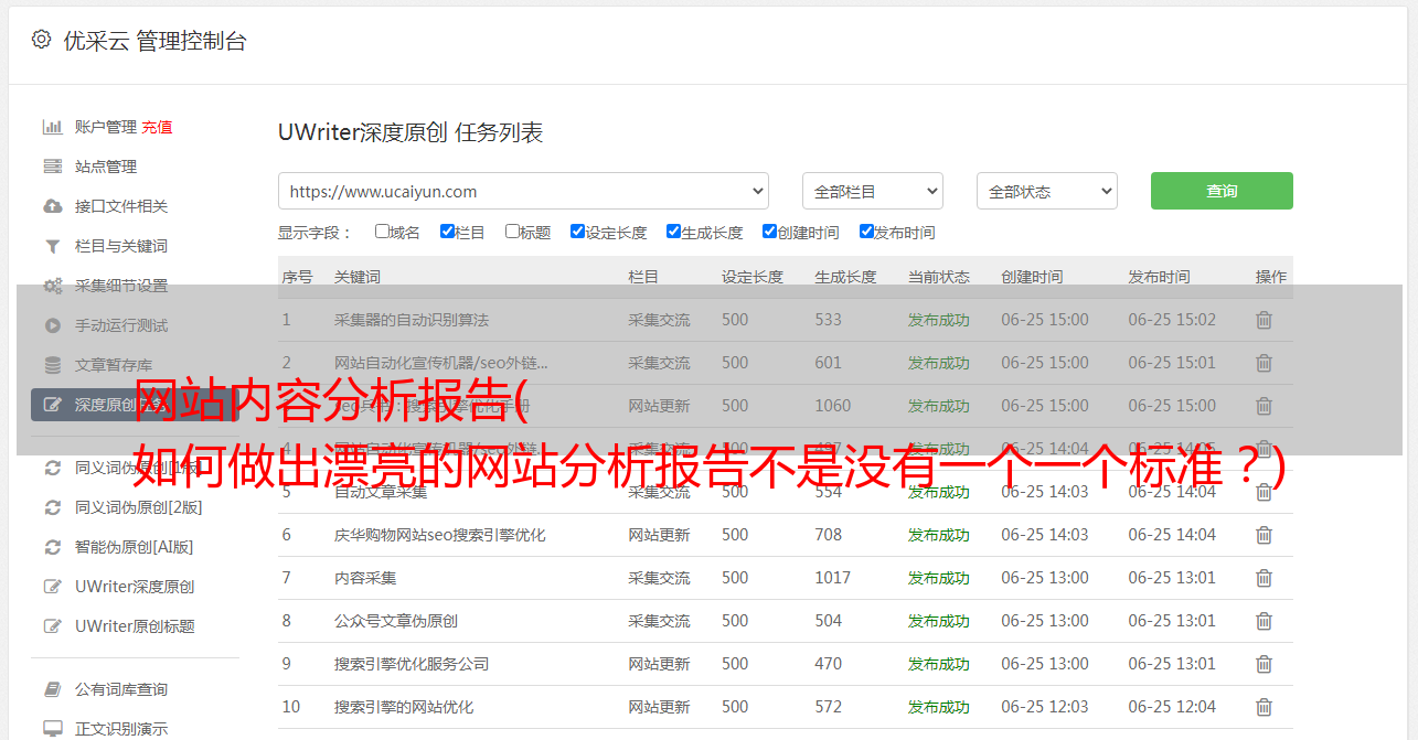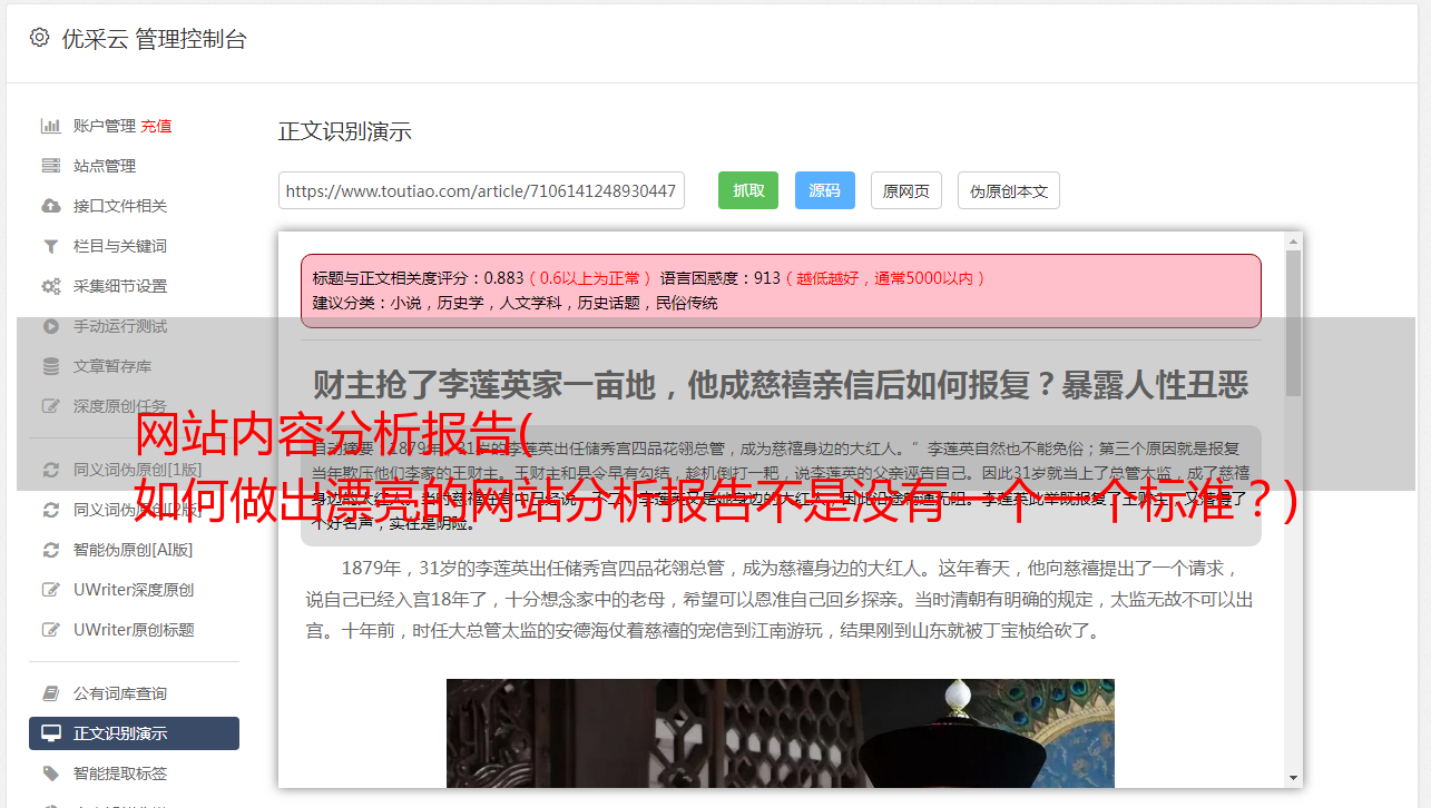 优采云 发布时间: 2021-11-14 13:05网站内容分析报告(