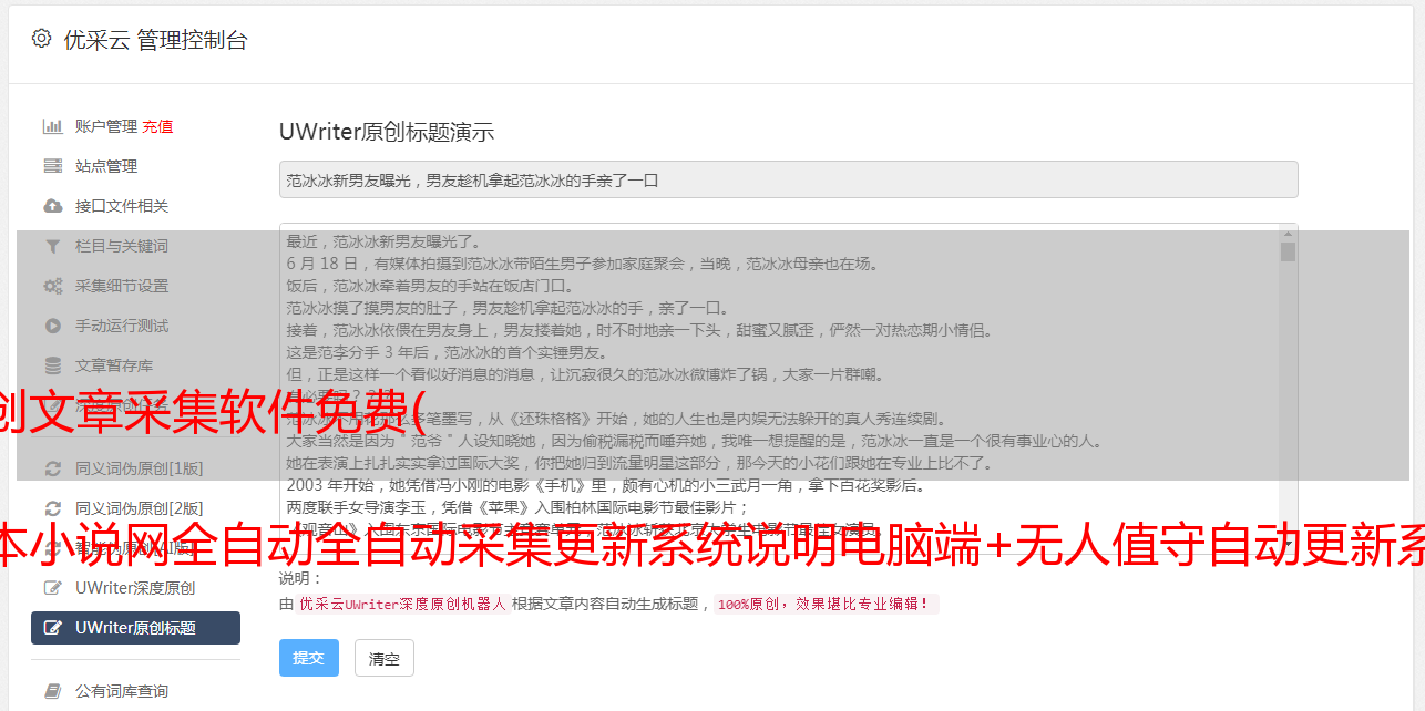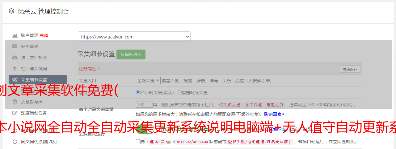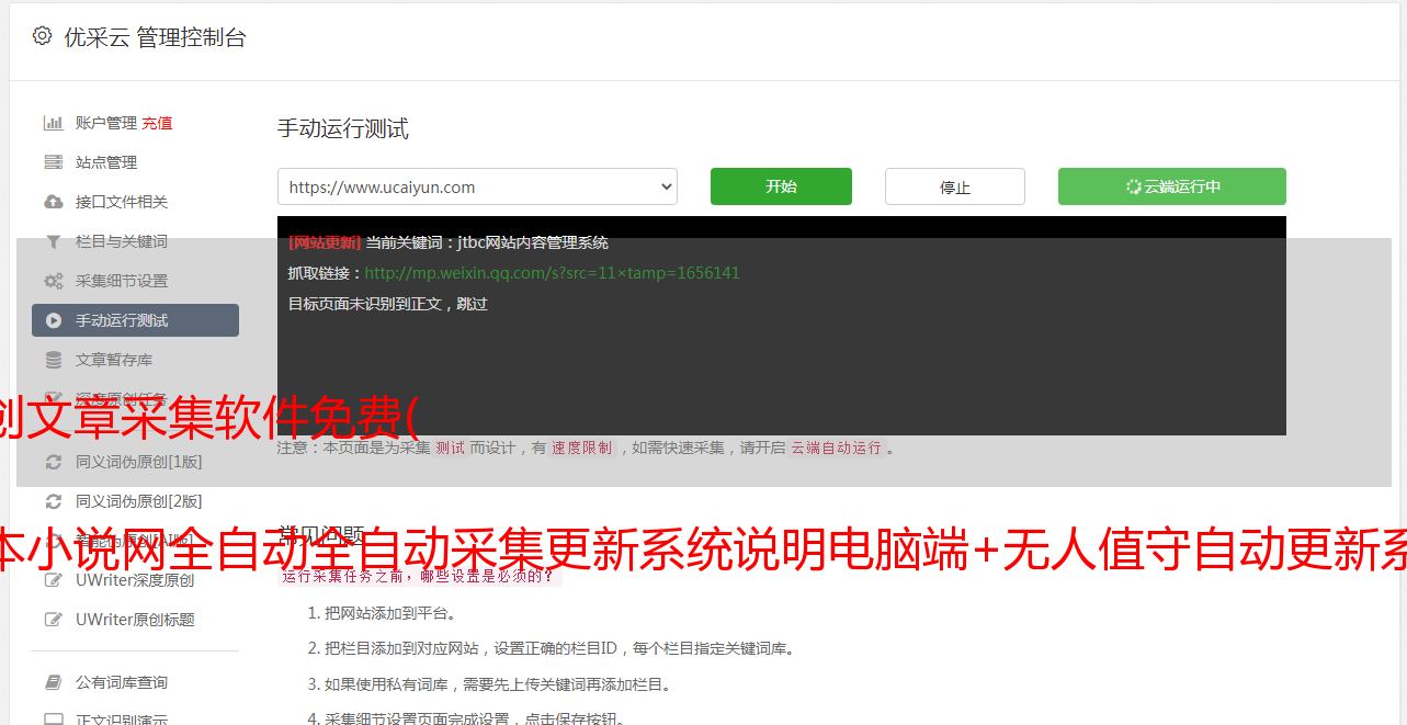 原创文章采集软件免费( 全本小说网全自动全自动采集更新系统说明电脑端+无人值守自动更新系统 )