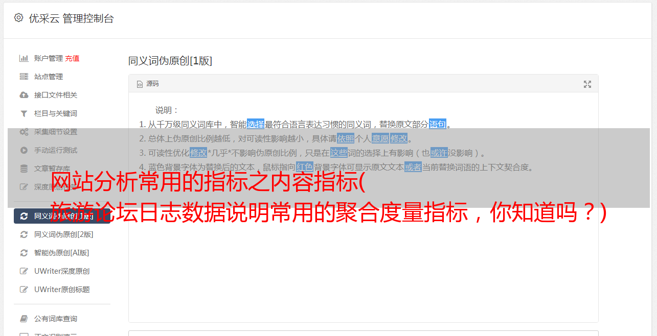 优采云 发布时间: 2021-11-14 21:11网站分析常用的指标之内容指标(