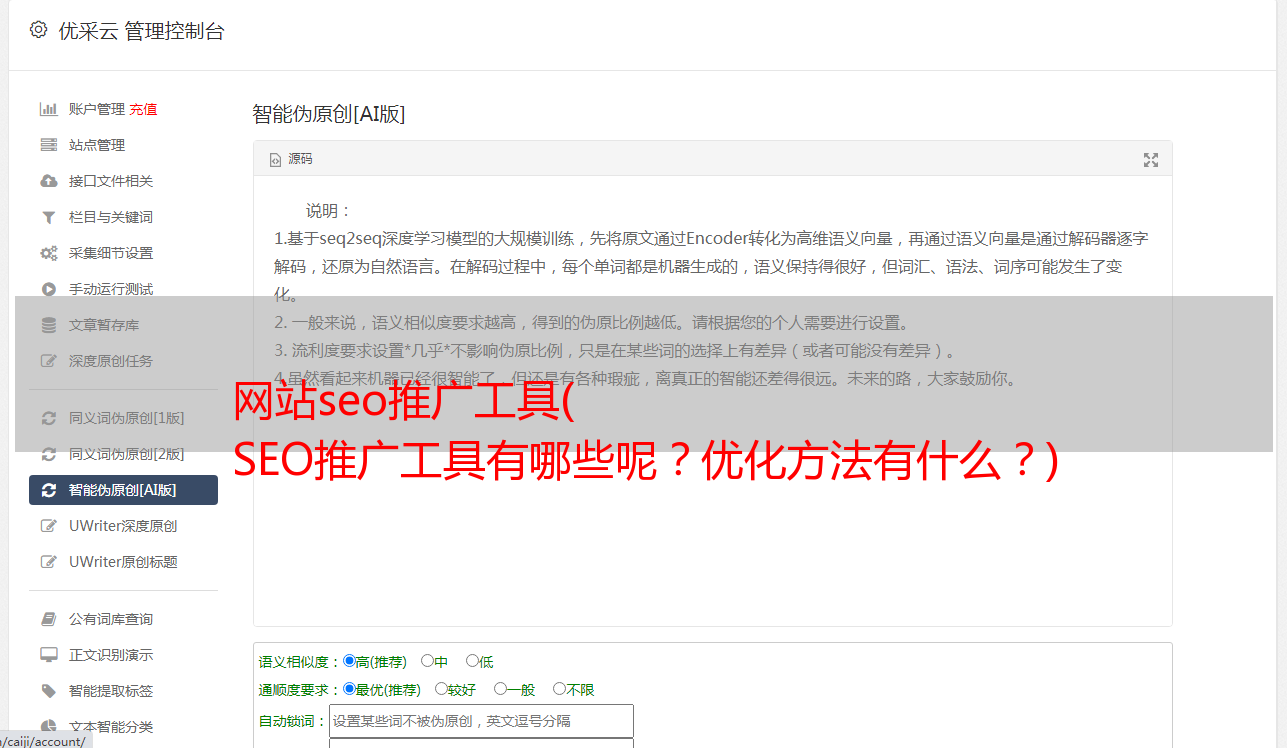 优采云 发布时间: 2021-11-14 22:06网站seo推广工具(
