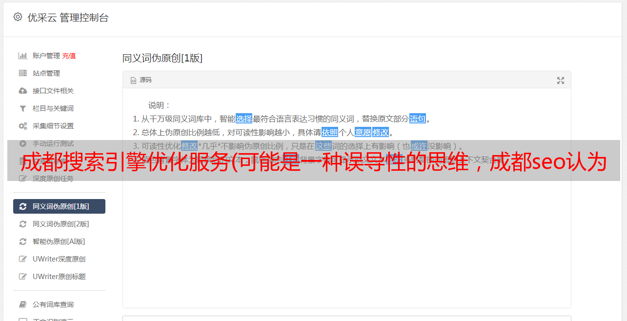 优采云 发布时间: 2021-11-15 00:01成都搜索引擎优化服务(可能是一种误导性的思维,成都seo认为SEO优化并不像想象的那么复杂)