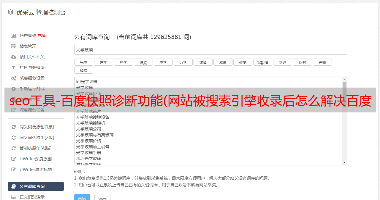 优采云 发布时间: 2021-11-15 00:08seo工具-百度快照诊断功能(网站被搜索引擎收录后怎么解决百度网站收录和快照更新