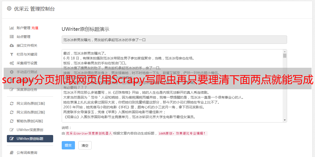 优采云 发布时间: 2021-11-15 04:04scrapy分页抓取网页(用Scrapy写爬虫再只要理清下面两点就能写成一个