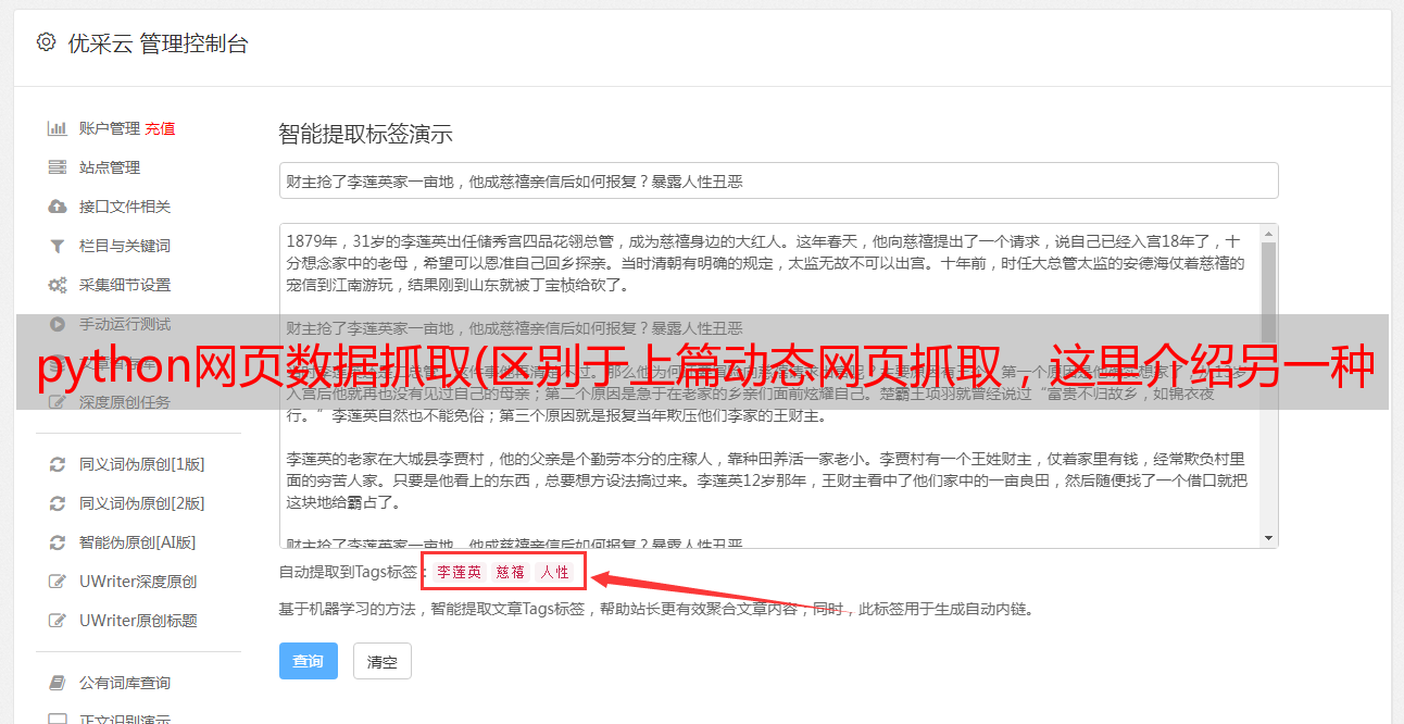 优采云 发布时间: 2021-11-15 05:02python网页数据抓取(区别于上篇动态网页抓取,这里介绍另一种方法)