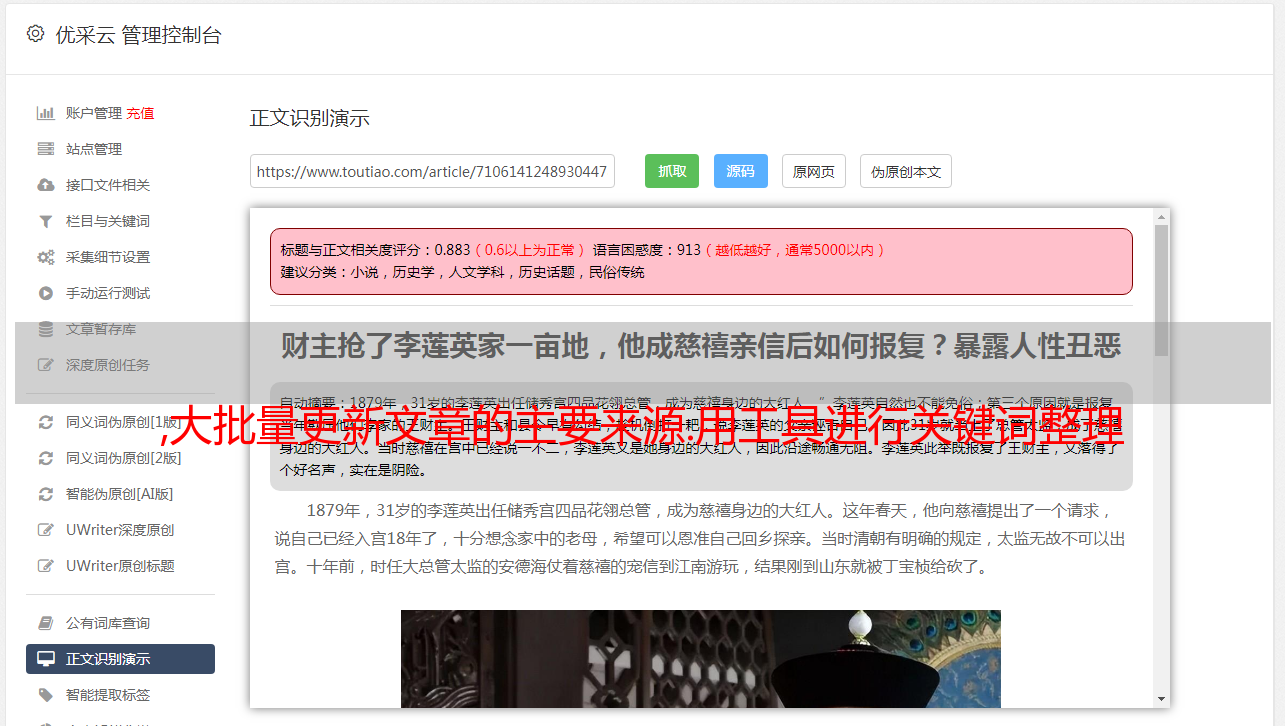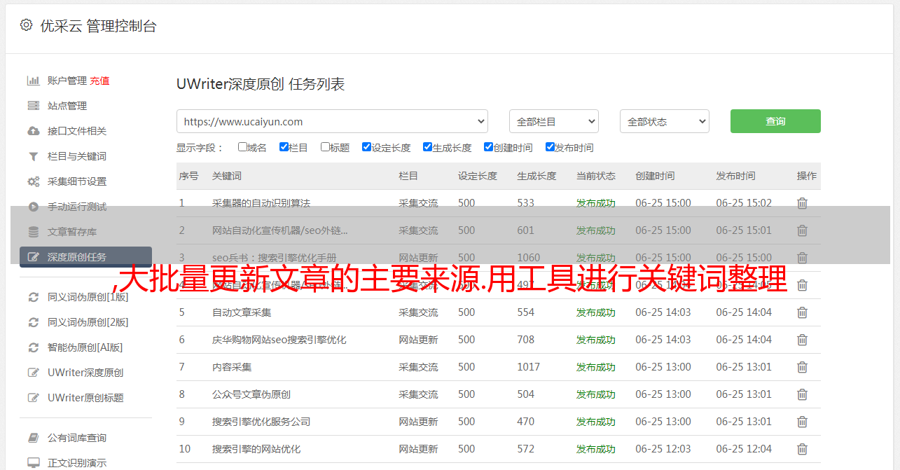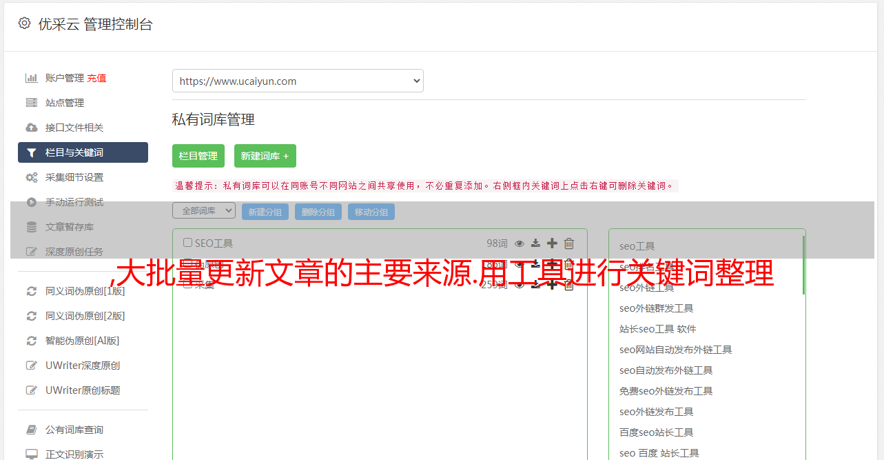 ,大批量更新文章的主要来源.用工具进行关键词整理