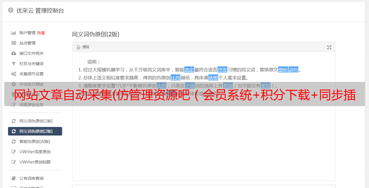 优采云 发布时间: 2021-11-15 09:12网站文章自动采集(仿管理资源吧(会员系统+积分下载+同步插件)企业资料下载)