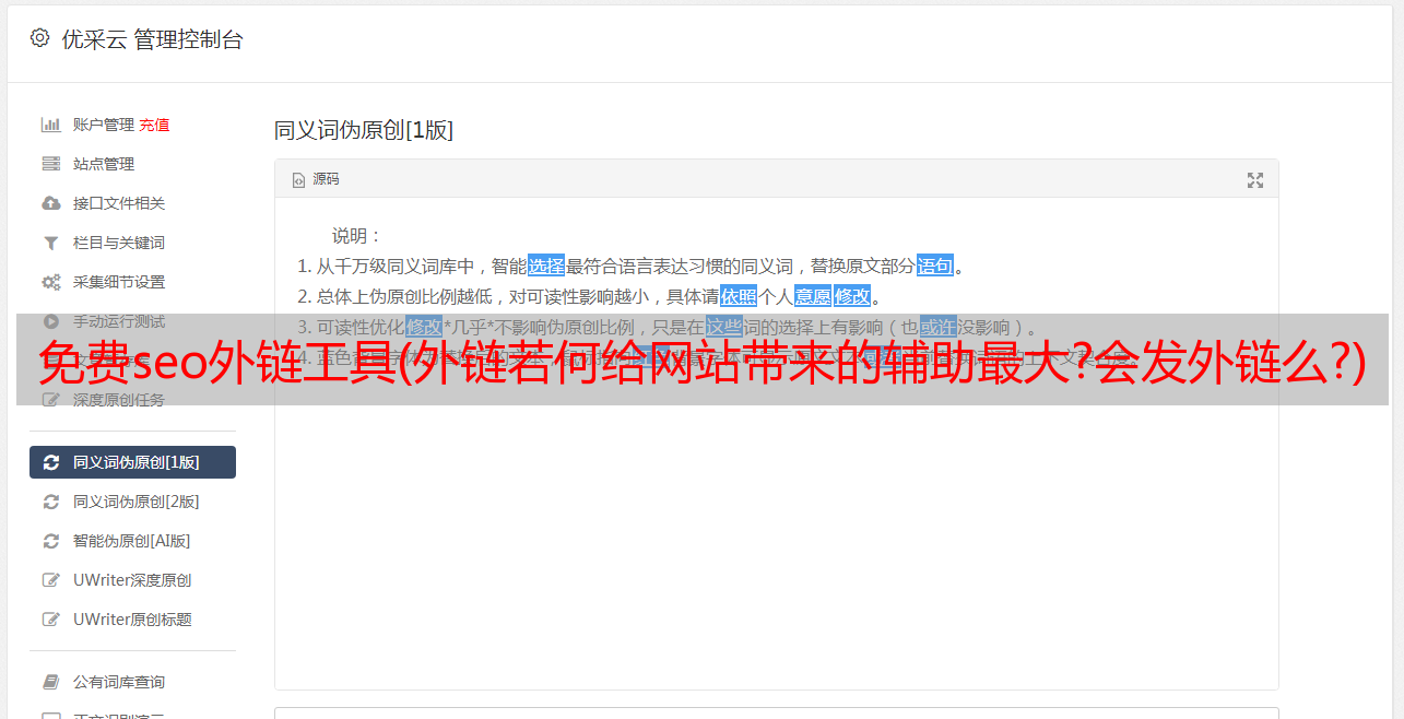 优采云 发布时间: 2021-11-15 12:06免费seo外链工具(外链若何给网站带来的辅助最大?会发外链么?)