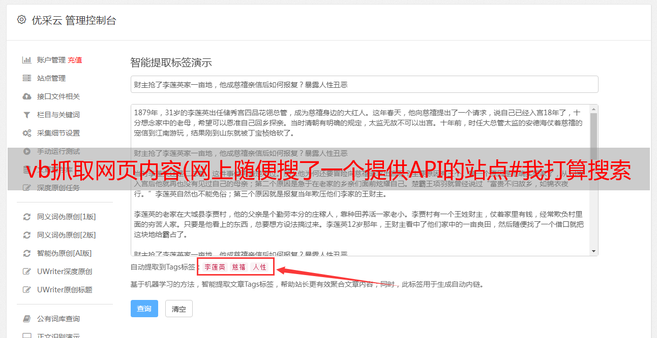 优采云 发布时间: 2021-11-15 14:03vb抓取网页内容(网上随便搜了一个提供API的站点#我打算搜索悉尼的天气如何)