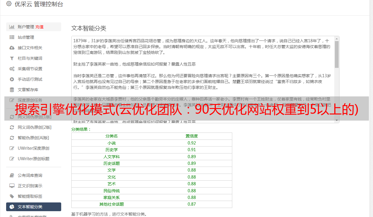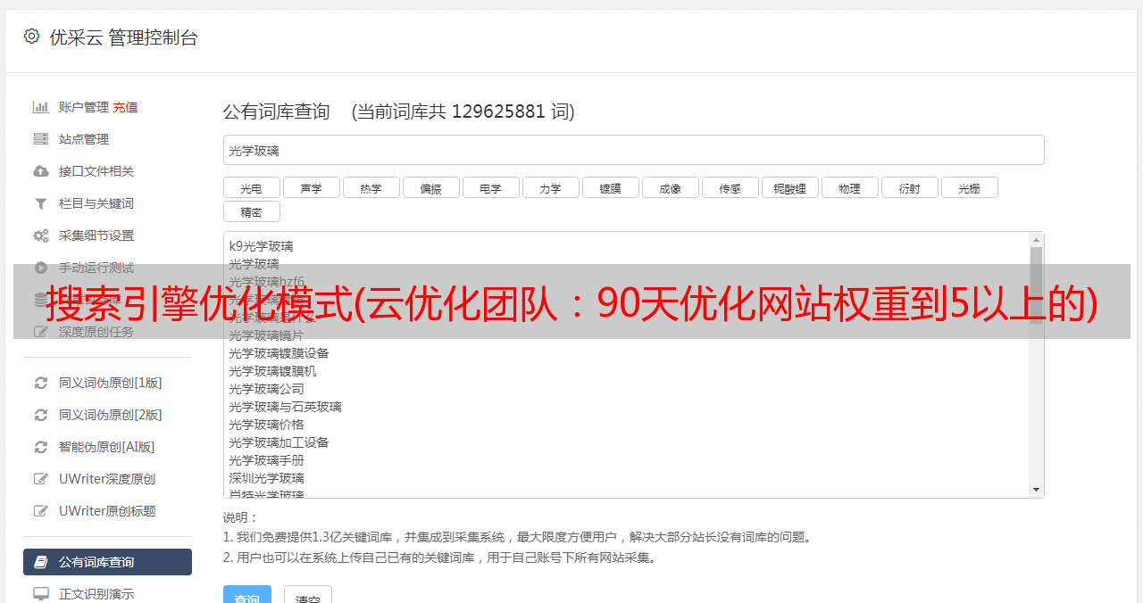 优采云 发布时间: 2021-11-15 15:12搜索引擎优化模式(云优化团队:90天优化网站权重到5以上的)