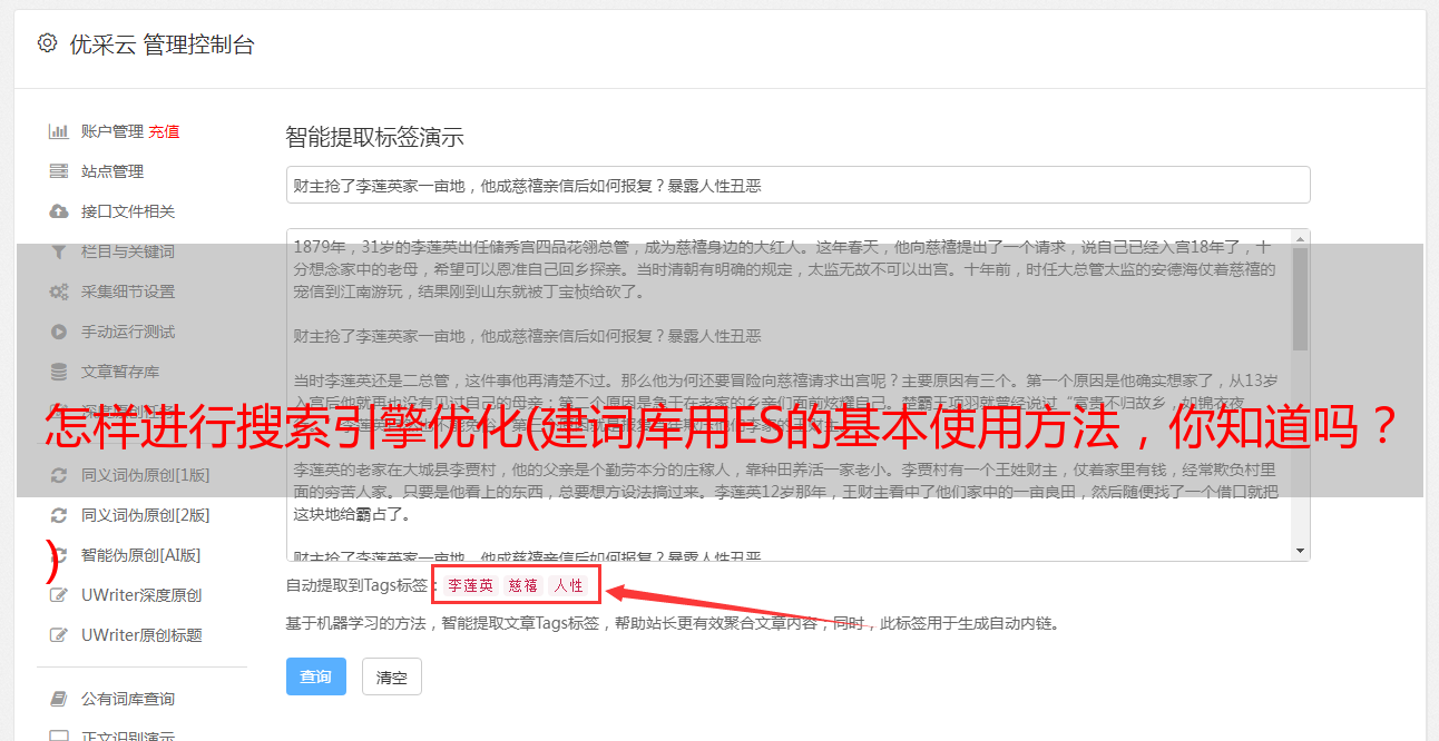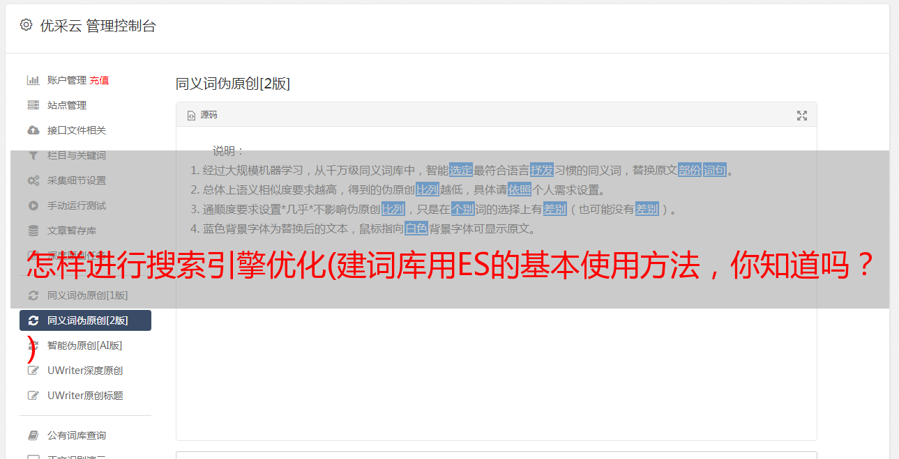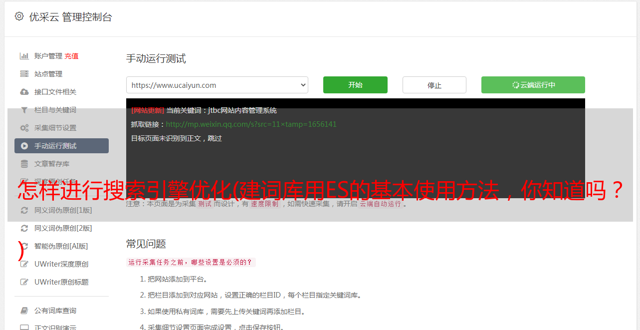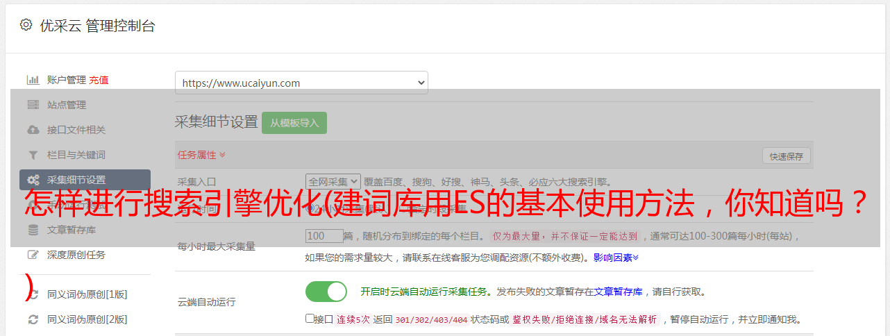 优采云 发布时间: 2021-11-15 15:16怎样进行搜索引擎优化(建词库用ES的基本使用方法,你知道吗?