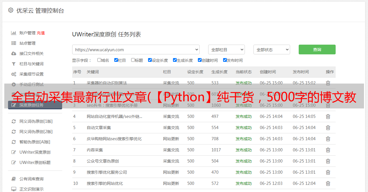 全自动采集最新行业文章(【Python】纯干货,5000字的博文教你采集整站小说(附源码) )
