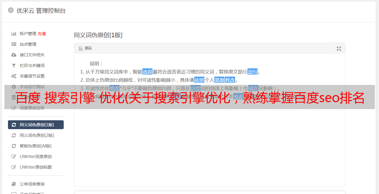 优采云 发布时间: 2021-11-15 16:02百度 搜索引擎 优化(关于搜索引擎优化,熟练掌握百度seo排名的原理,正确执行)