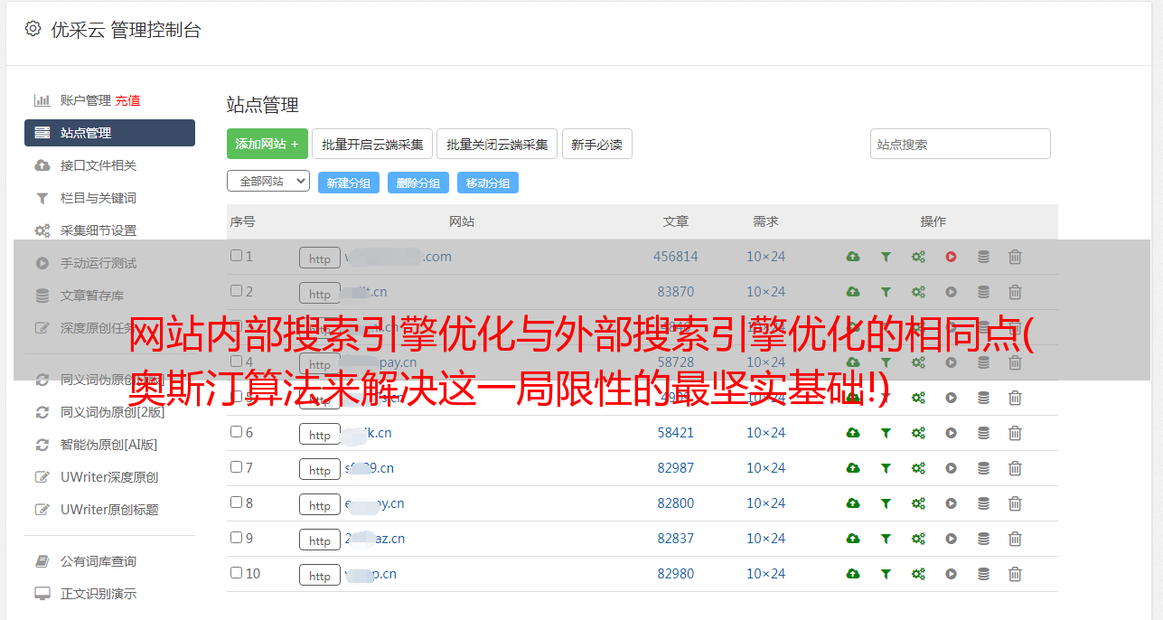 优采云 发布时间: 2021-11-15 17:16网站内部搜索引擎优化与外部搜索引擎优化的相同点(