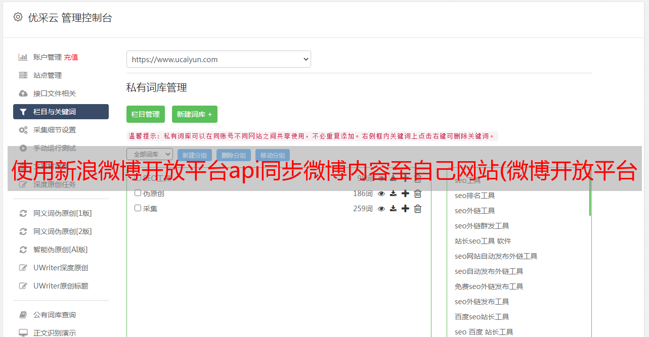 优采云 发布时间: 2021-11-15 19:04使用新浪微博开放平台api同步微博内容至自己网站(微博开放平台怎么做?如何提高网站信息传播力(组图)