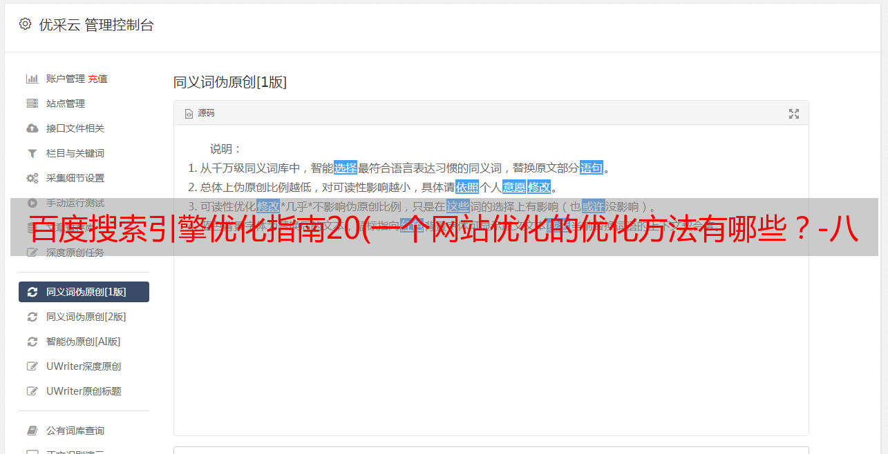 优采云 发布时间: 2021-11-15 19:04百度搜索引擎优化指南20(一个网站优化的优化方法有哪些?-八维教育)