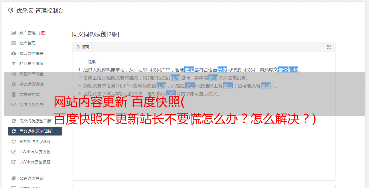 网站内容更新 百度快照( 百度快照不更新站长不要慌怎么办?怎么解决?)