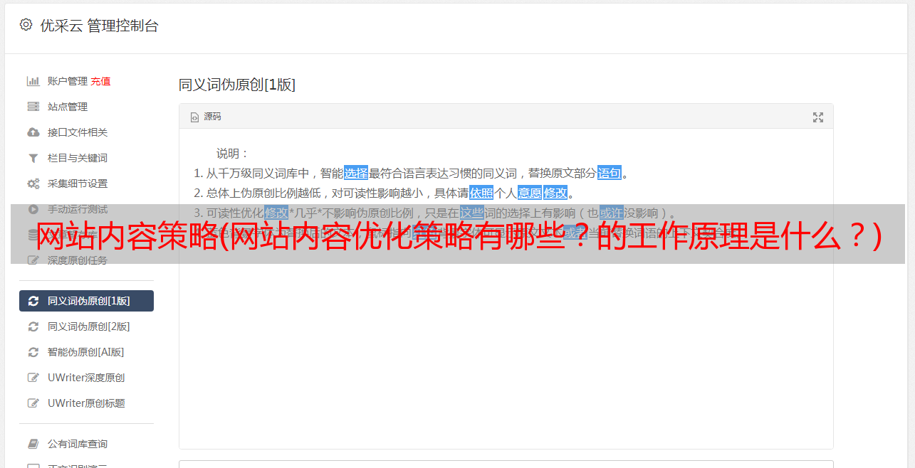 优采云 发布时间: 2021-11-15 20:22网站内容策略(网站内容优化策略有哪些?的工作原理是什么?)