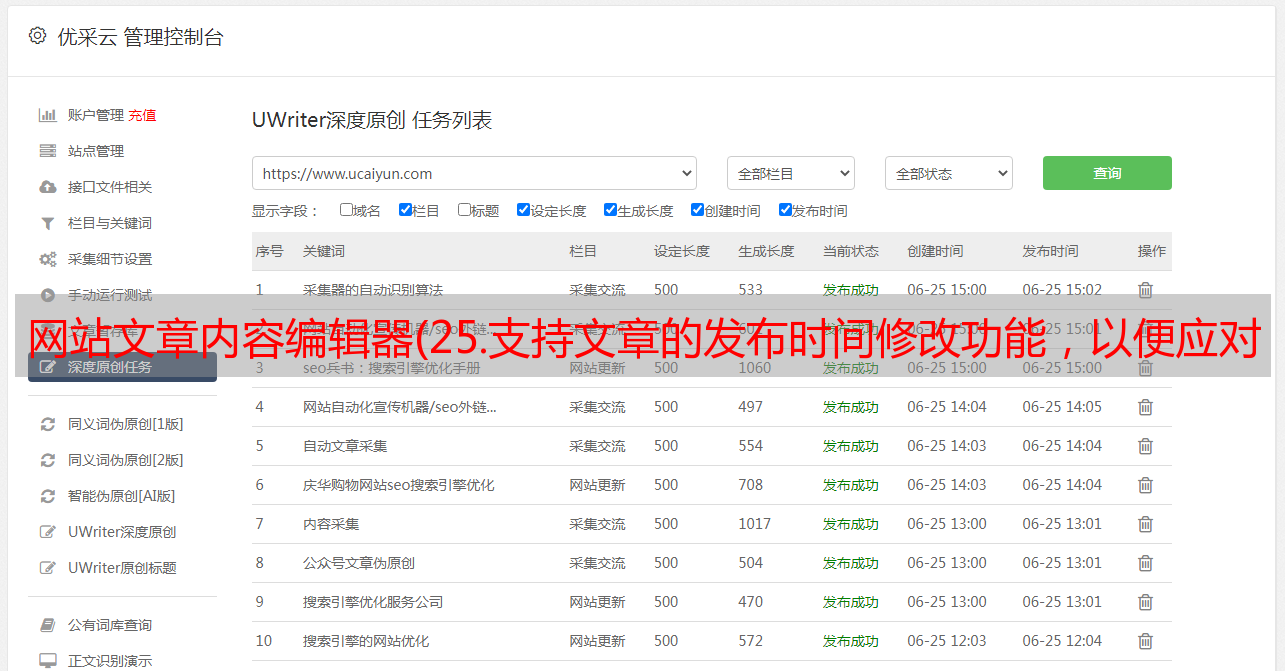 优采云 发布时间: 2021-11-15 21:02网站文章内容编辑器(25.支持文章的发布时间修改功能,以便应对不同的工作环境需求