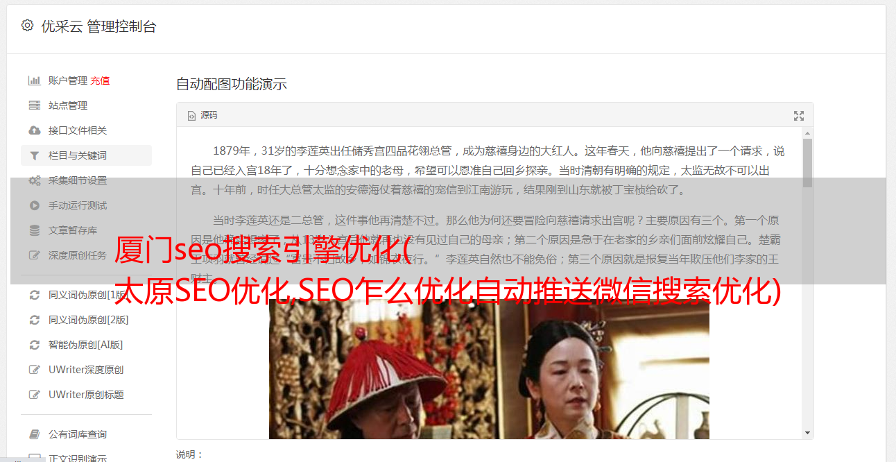 关键词:太原SEO优化、SEO优化、自动推送微信搜索优化、SEO转载内容、SEO优化、搜索引擎