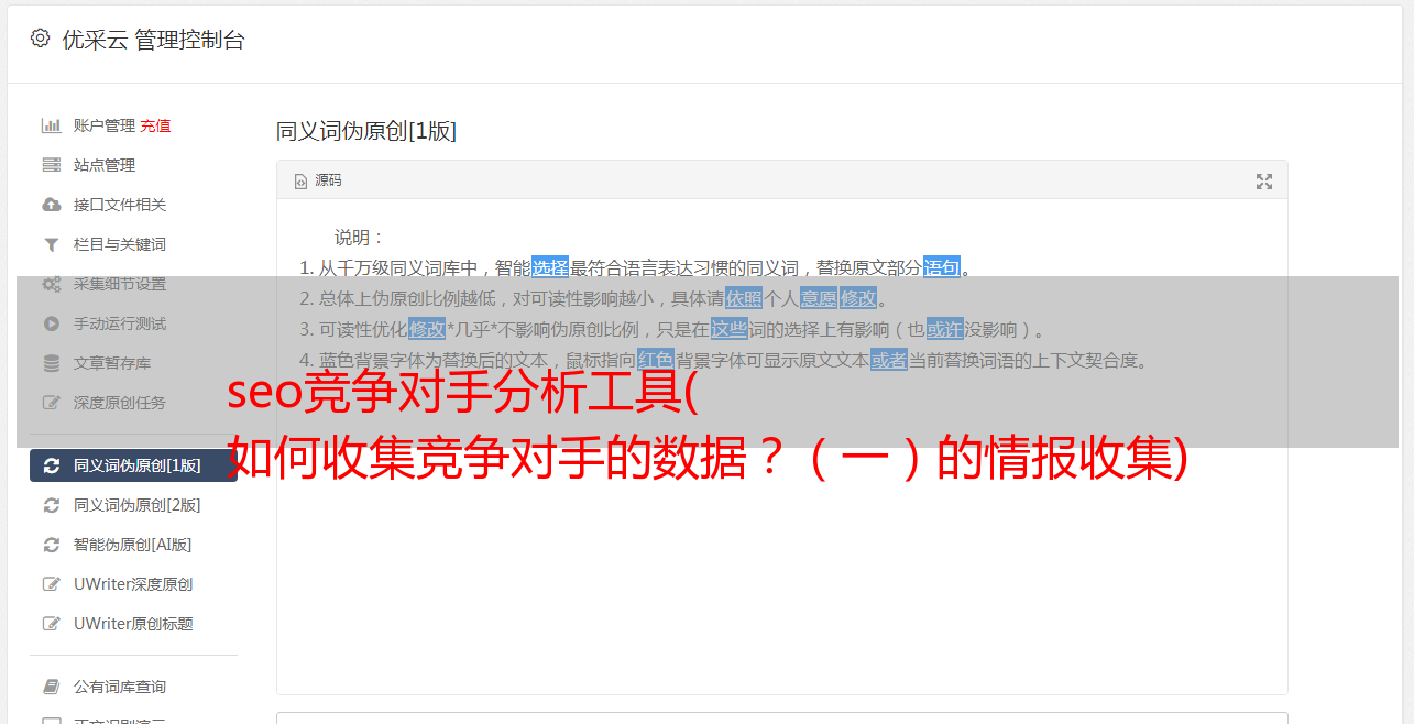 优采云 发布时间: 2021-11-15 21:21seo竞争对手分析工具(