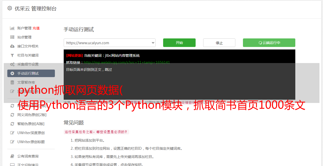 使用Python语言的3个Python模块,抓取简书首页1000条文章与标题)