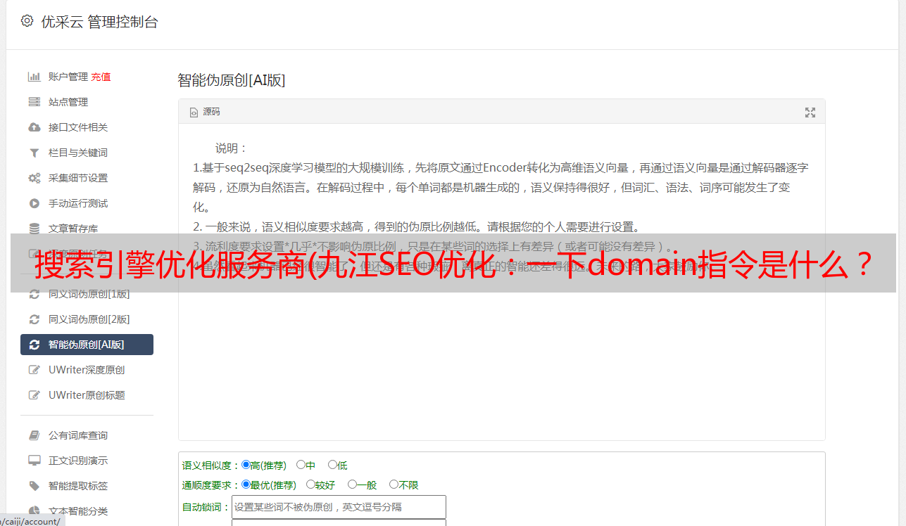 优采云 发布时间: 2021-11-16 01:03搜索引擎优化服务商(九江SEO优化:一下domain指令是什么?有什么作用)