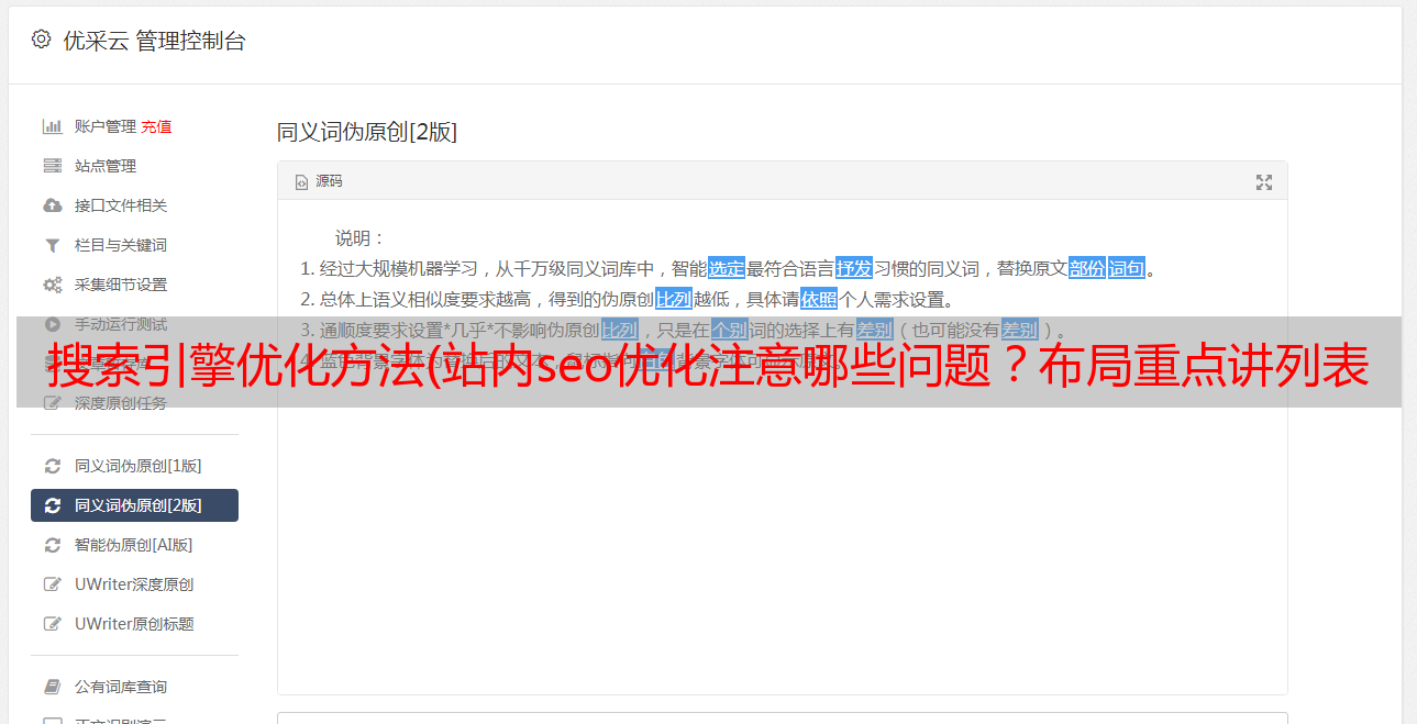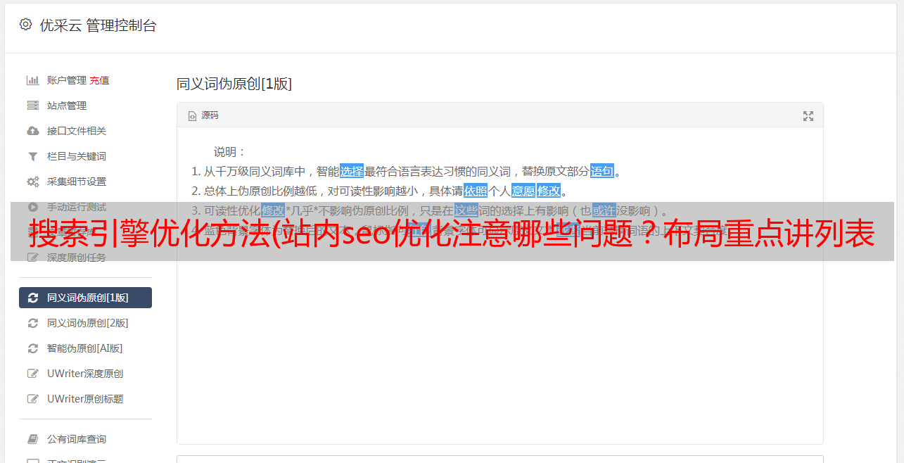 优采云 发布时间: 2021-11-16 01:08搜索引擎优化方法(站内seo优化注意哪些问题?布局重点讲列表页关键词)
