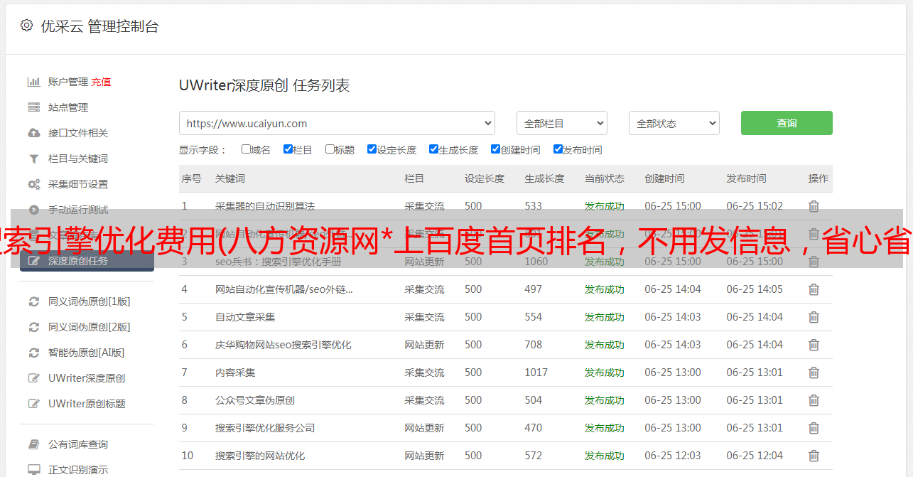 优采云 发布时间: 2021-11-16 01:14搜索引擎优化费用(八方资源网*上百度首页排名,不用发信息,省心省力