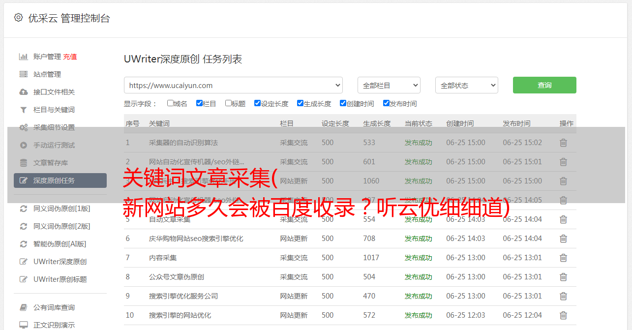 关键词文章采集( 新网站多久会被百度收录?听云优细细道)