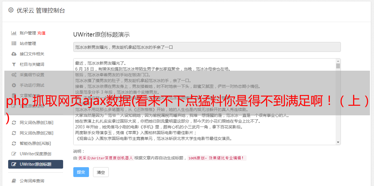 优采云 发布时间: 2021-11-16 03:04php 抓取网页ajax数据(看来不下点猛料你是得不到满足啊!(上)