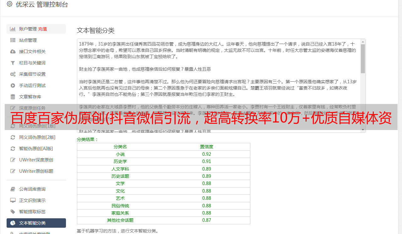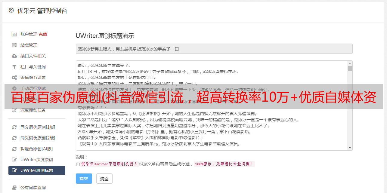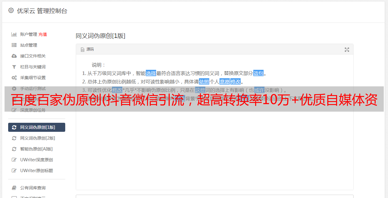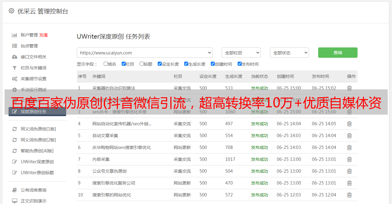 优采云 发布时间: 2021-11-16 03:09百度百家伪原创(抖音微信引流,超高转换率10万+优质自媒体资源)
