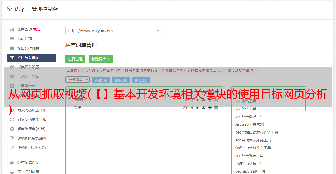 优采云 发布时间: 2021-11-16 03:09从网页抓取视频(【】基本开发环境相关模块的使用目标网页分析