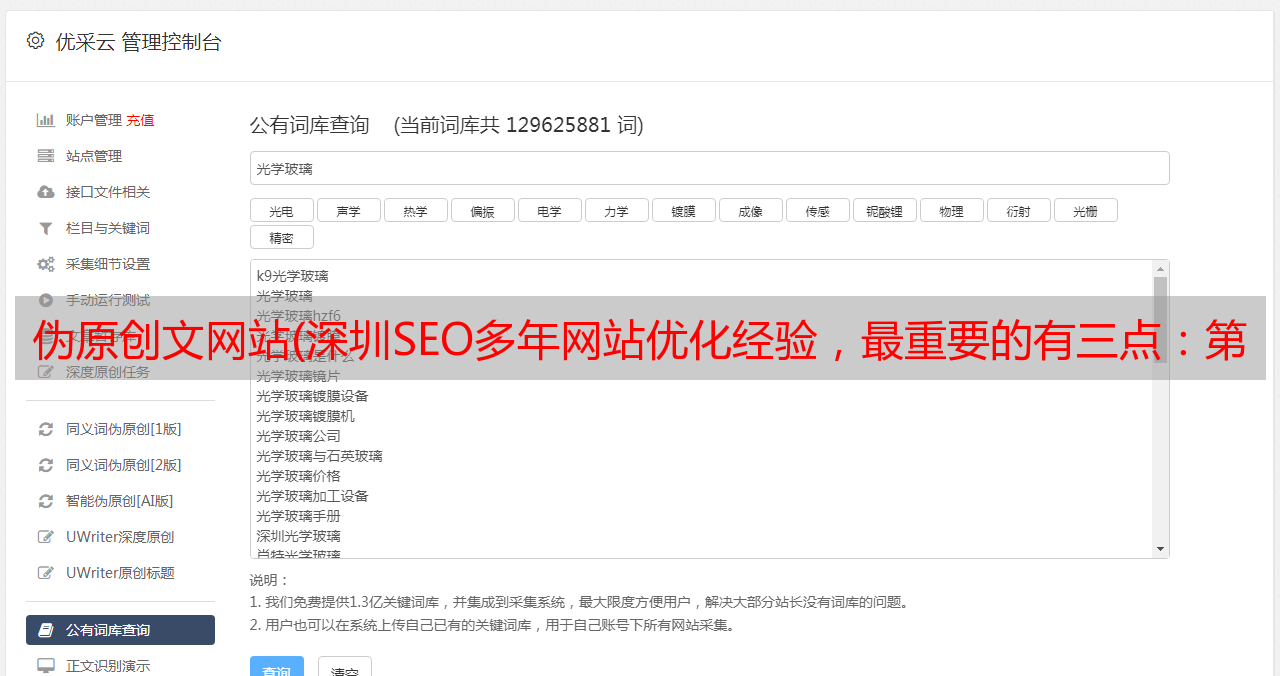 优采云 发布时间: 2021-11-16 03:16伪原创文网站(深圳SEO多年网站优化经验,最重要的有三点:第一)