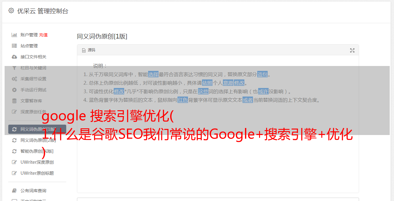 优采云 发布时间: 2021-11-16 05:19google 搜索引擎优化(