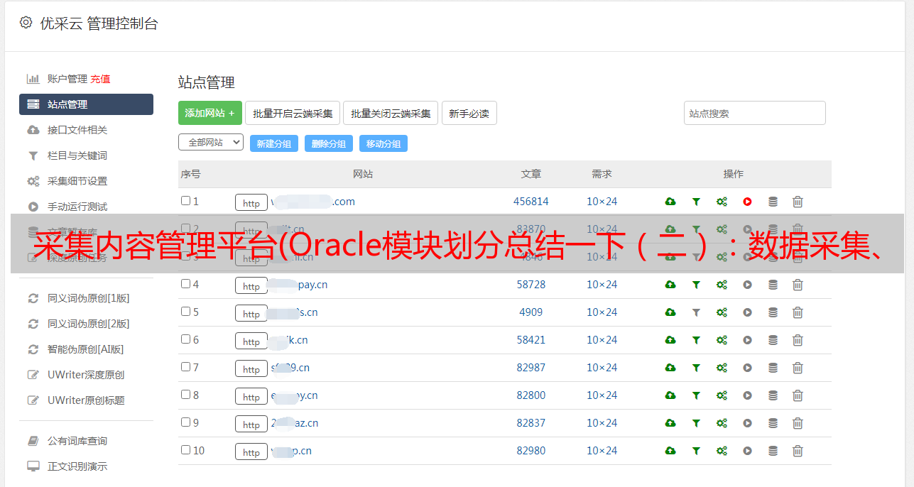 优采云 发布时间: 2021-11-16 07:06采集内容管理平台(Oracle模块划分总结一下(二):数据采集、规则解析)