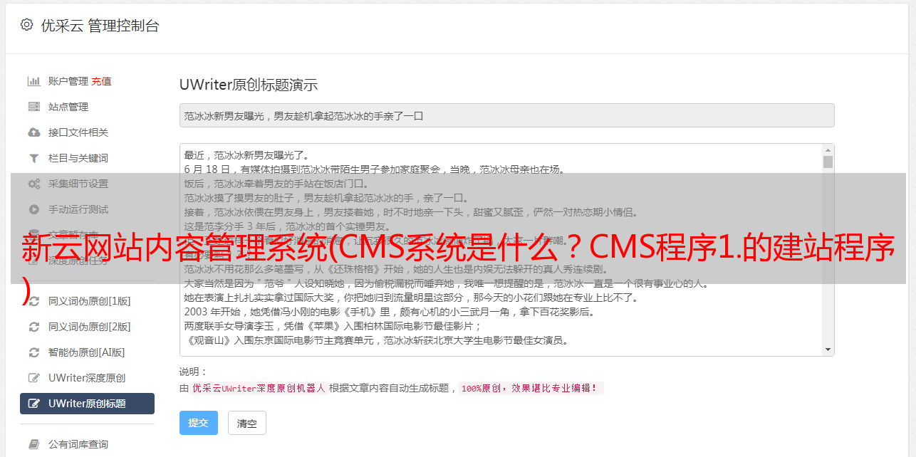 优采云 发布时间: 2021-11-16 07:07新云网站内容管理系统(CMS系统是什么?CMS程序1.的建站程序